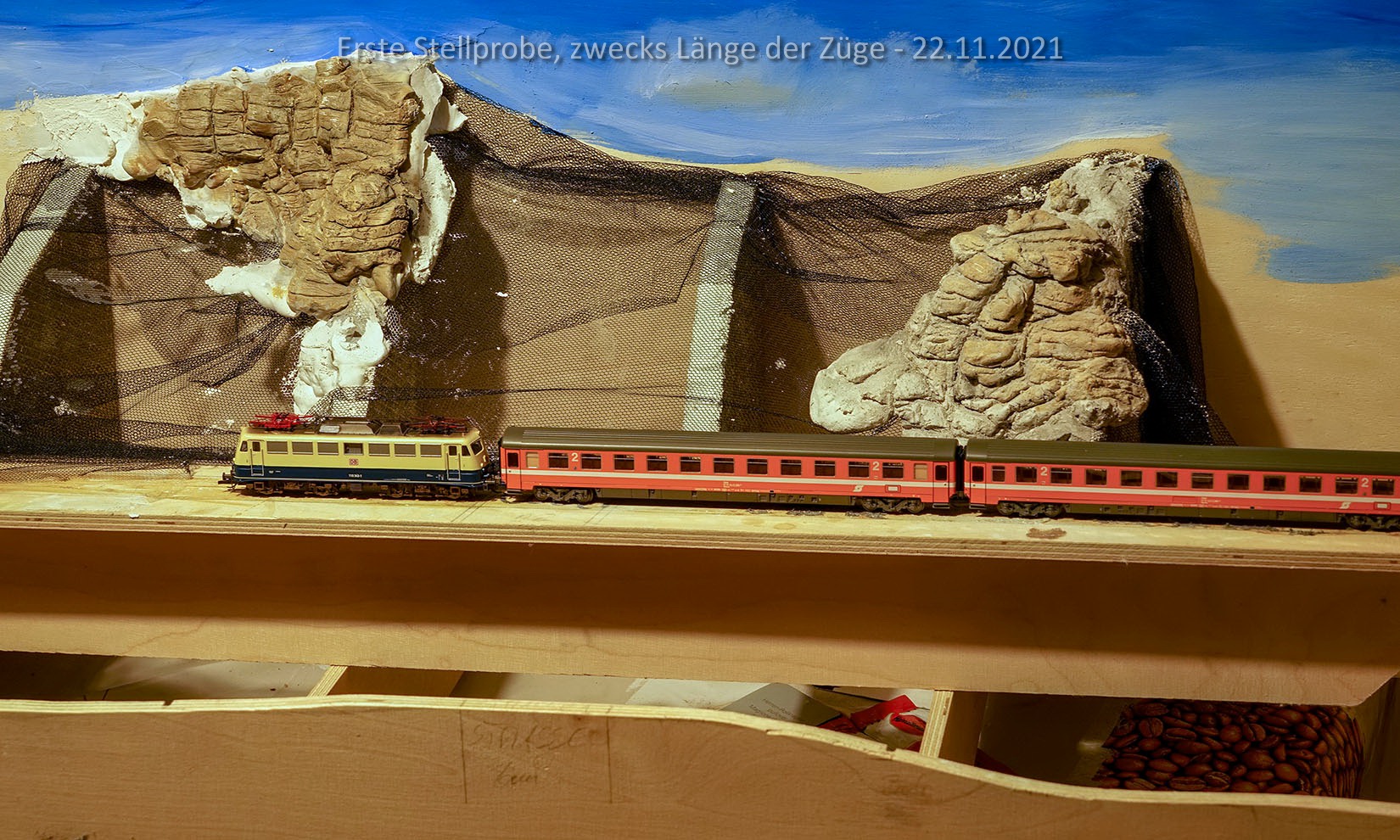 Versuchsdiorama zwecks Felsen- und Landschaftsbau